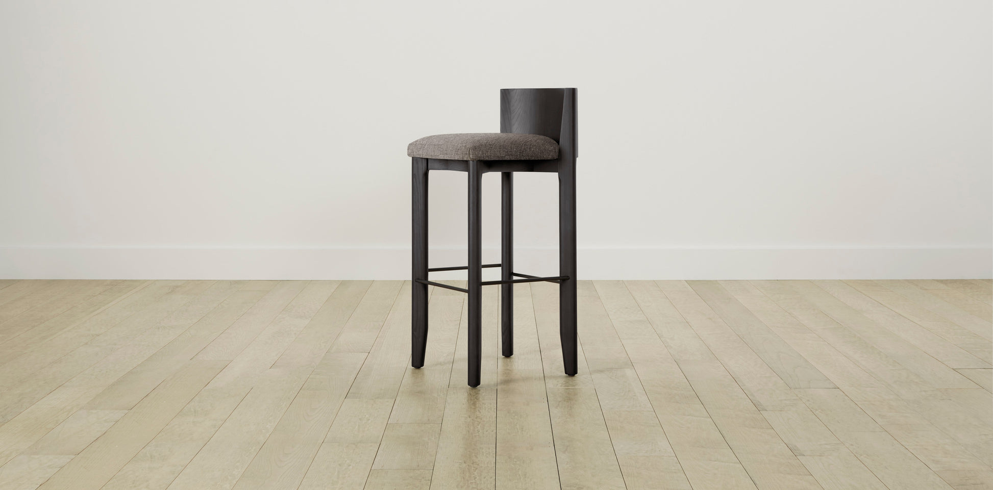 The Delancey with Brushed Brass - Belgian Linen Carob Bar and Counter Stool