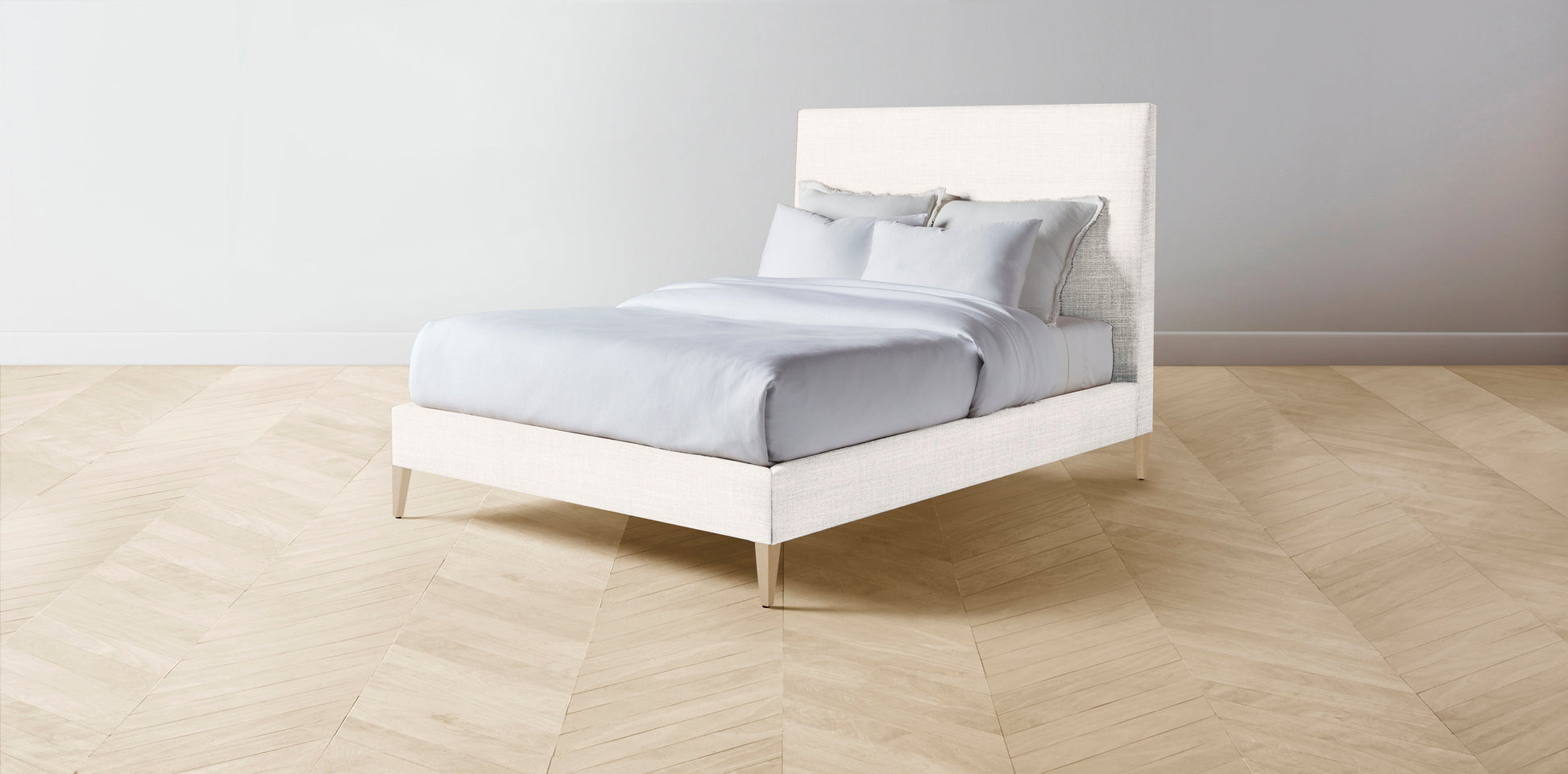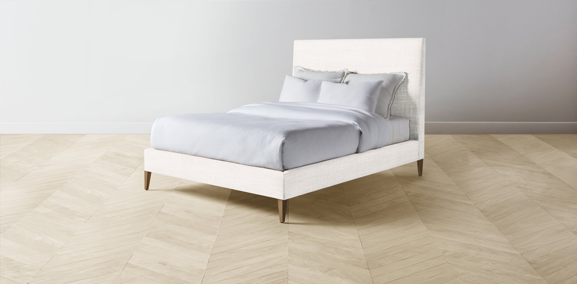 The Essex - Performance Textured Tweed Snow Bed - 56" Headboard - Muslin on reverse