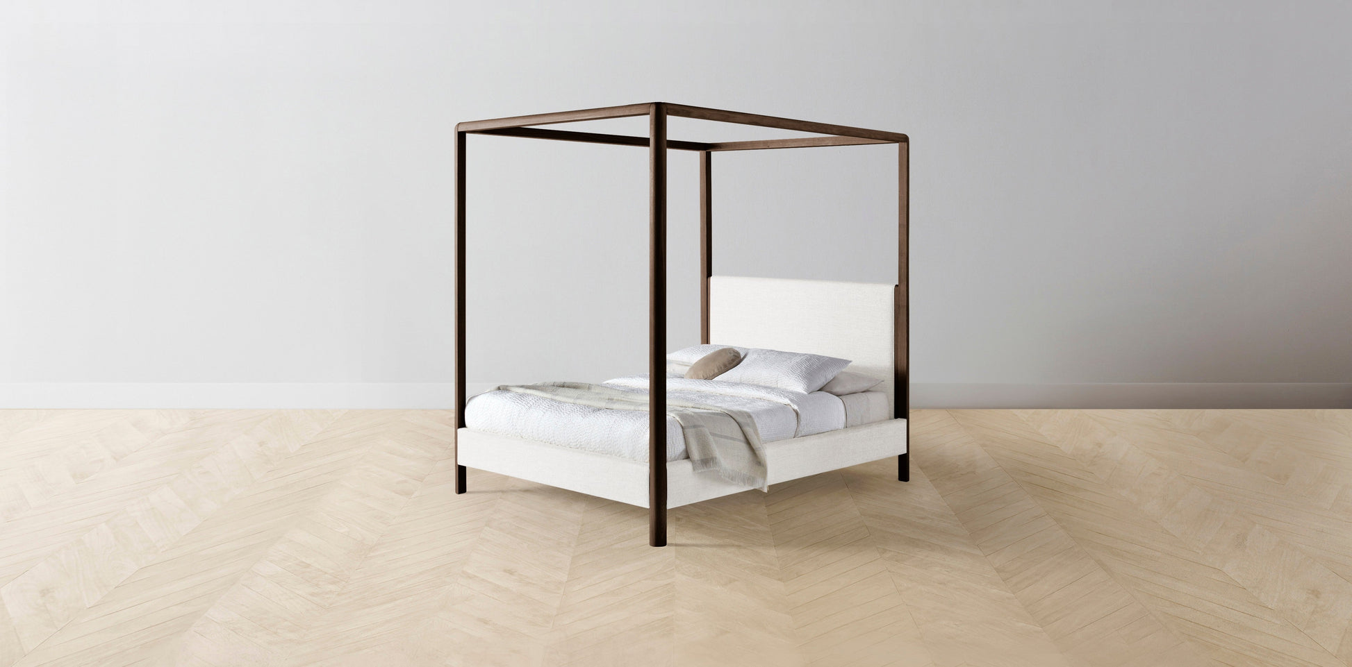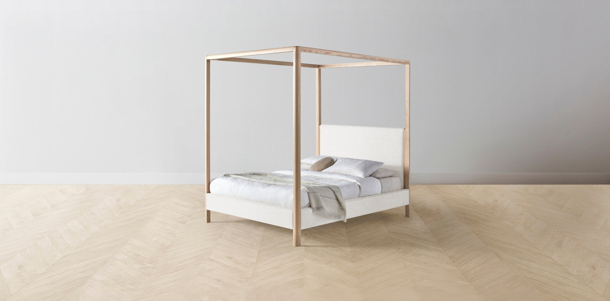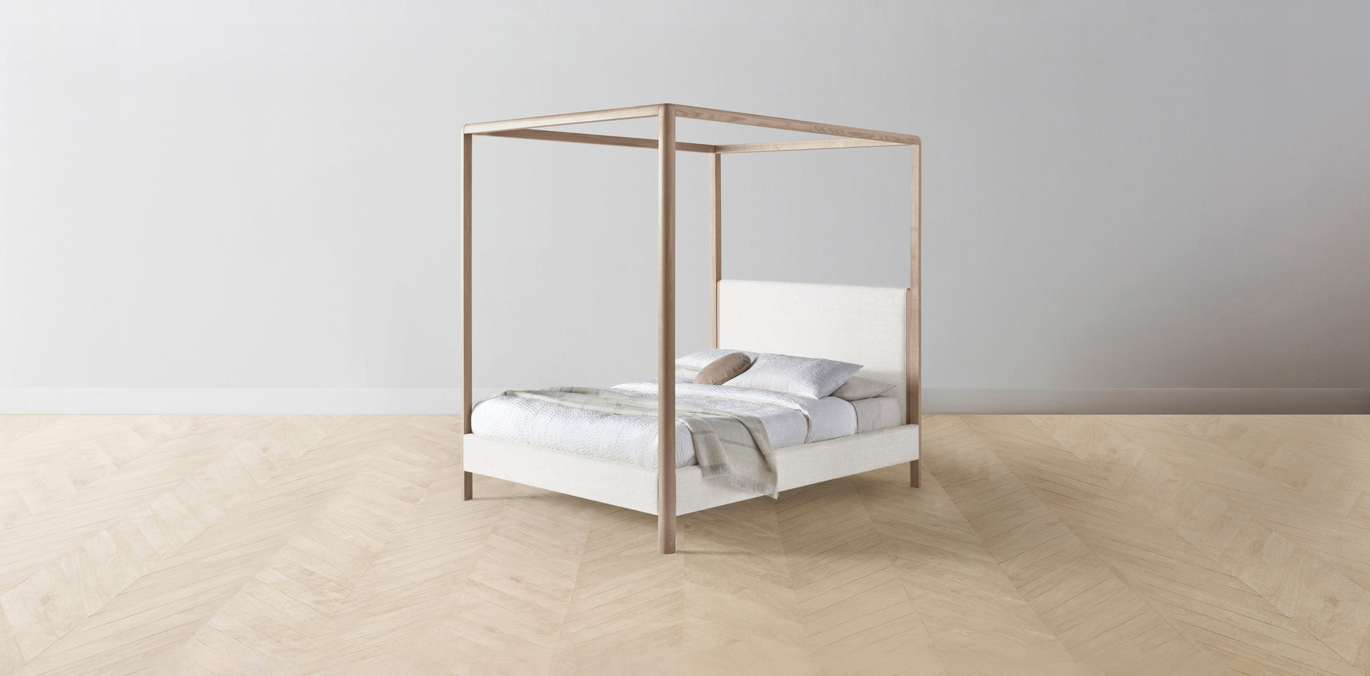 The Thompson - Belgian Linen Egret Canopy Bed - 48" Headboard - Upholstered on reverse