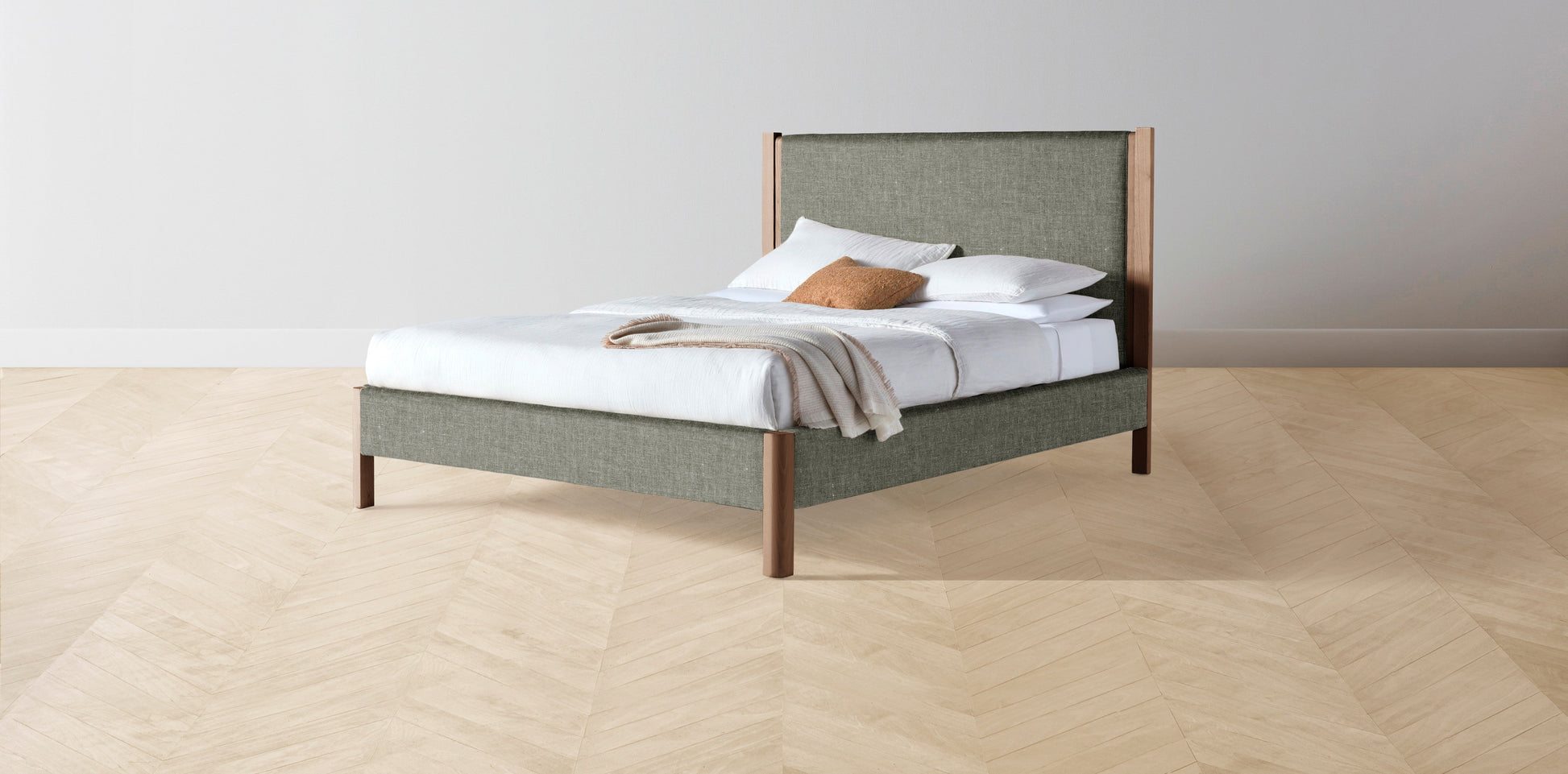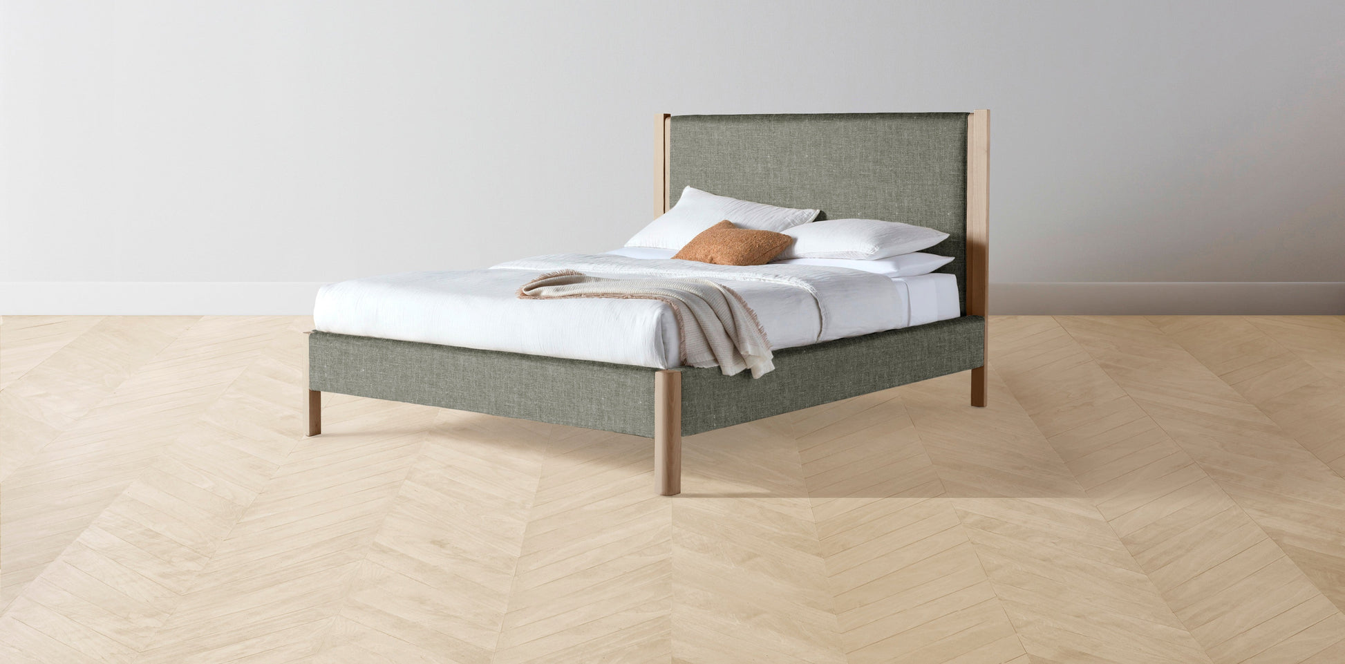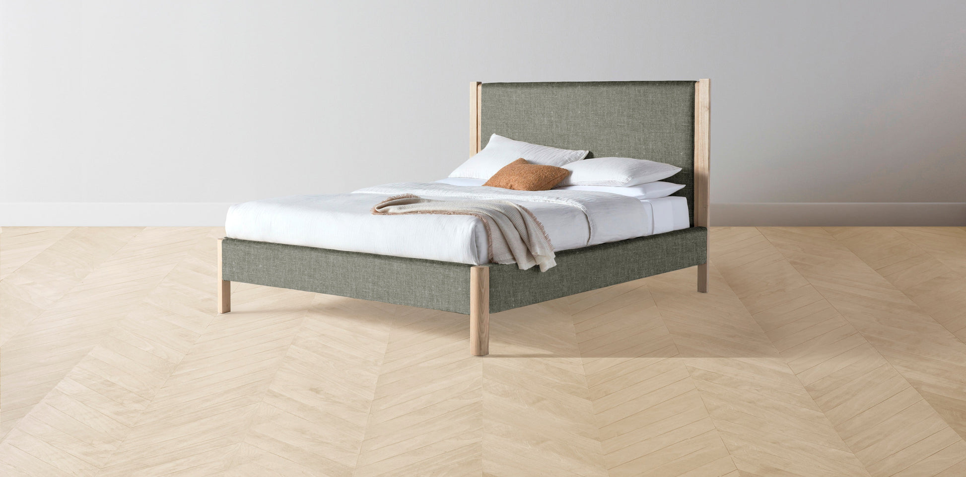 The Thompson - Belgian Linen Thyme Bed - 48" Headboard - Upholstered on reverse