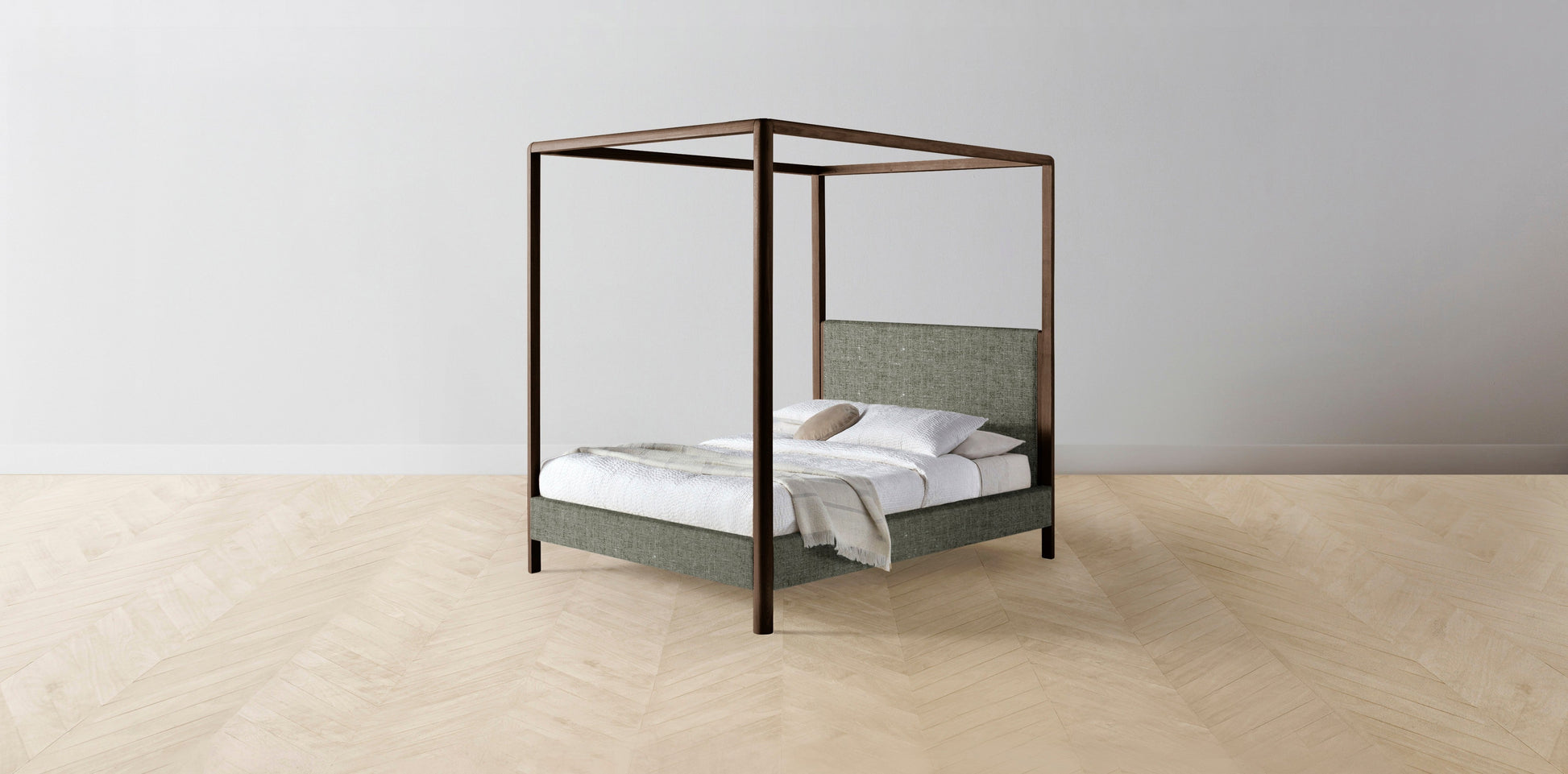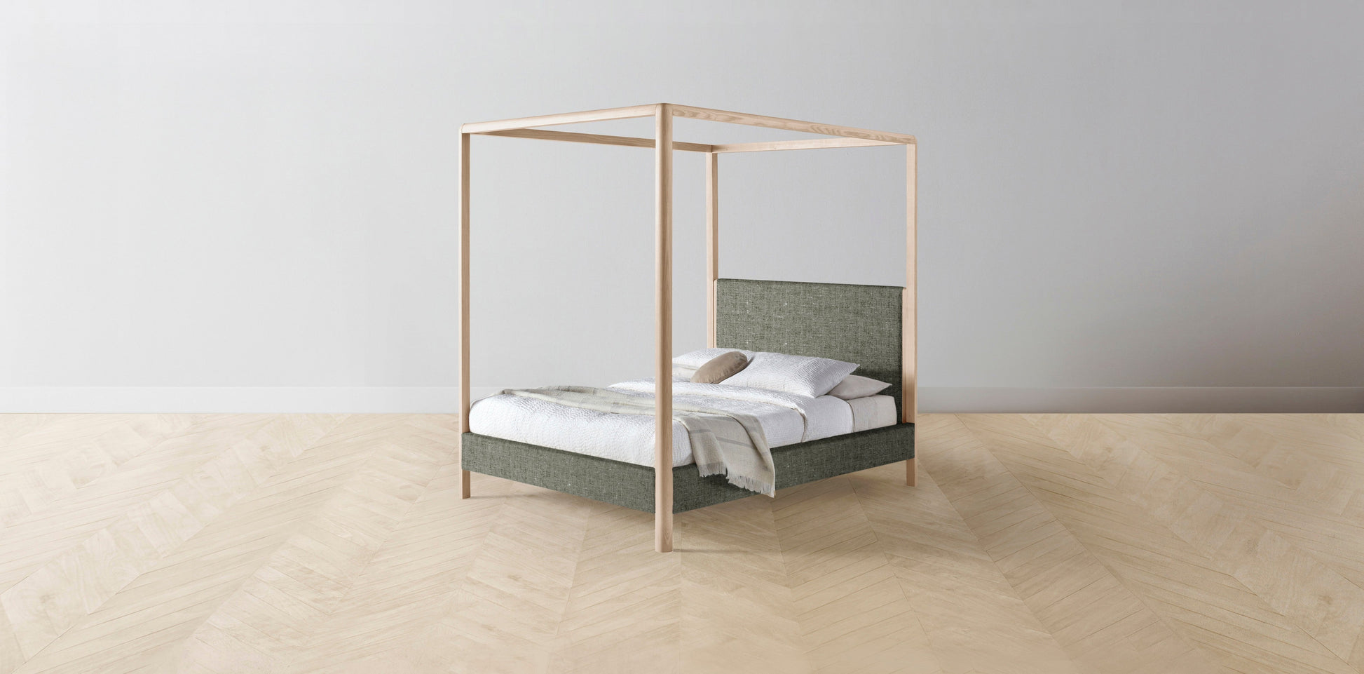 The Thompson - Belgian Linen Thyme Canopy Bed - 48" Headboard - Muslin on reverse