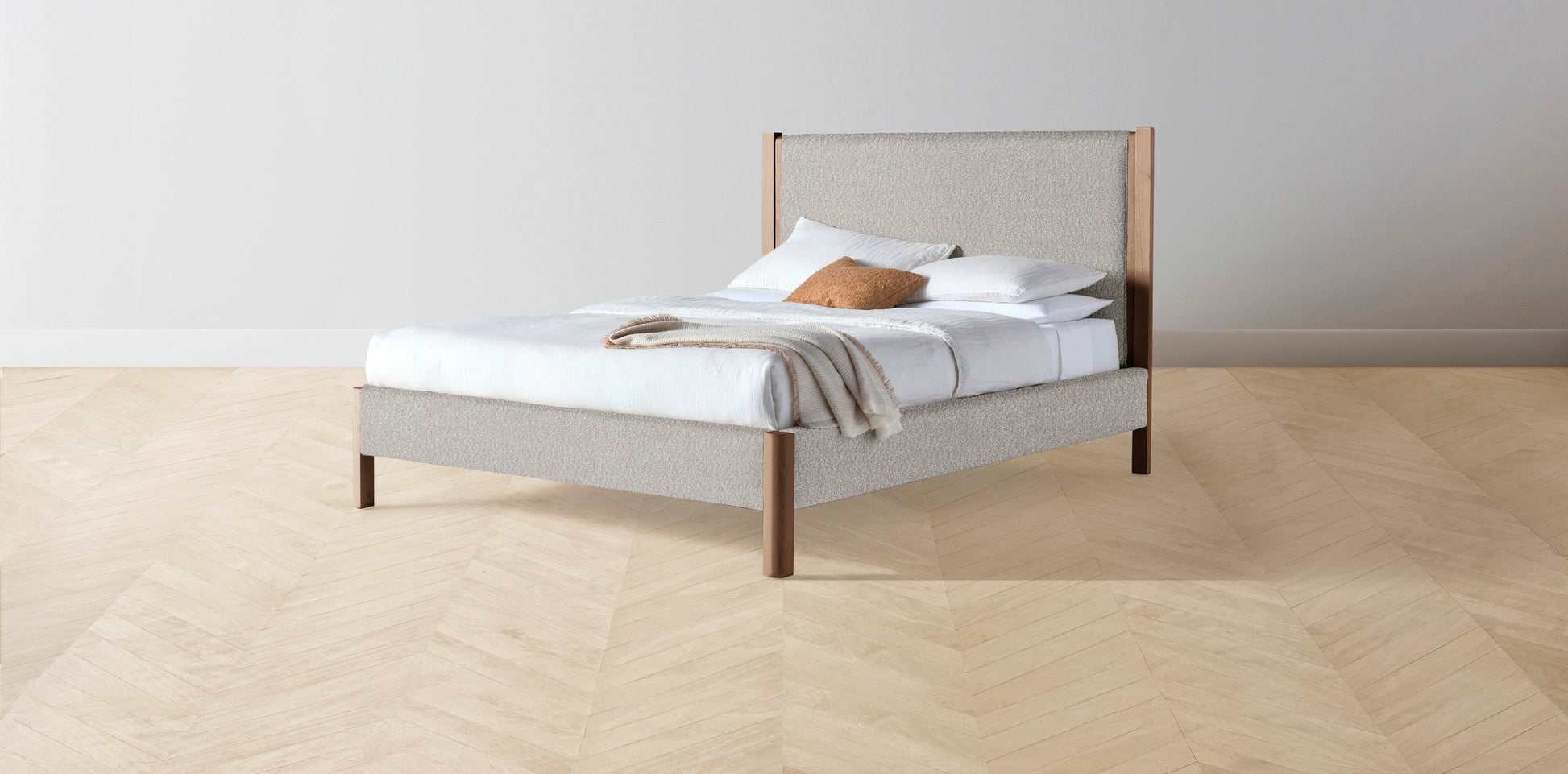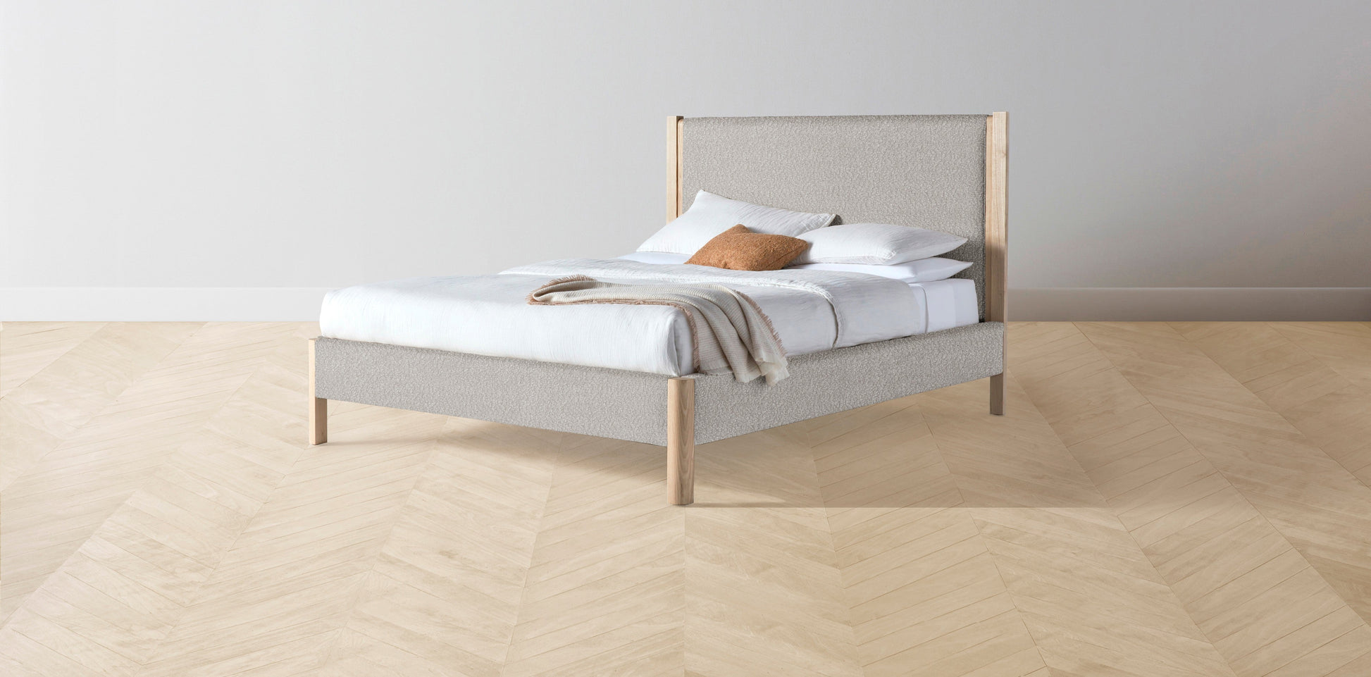 The Thompson - Italian Bouclé Fossil Bed - 48" Headboard - Muslin on reverse