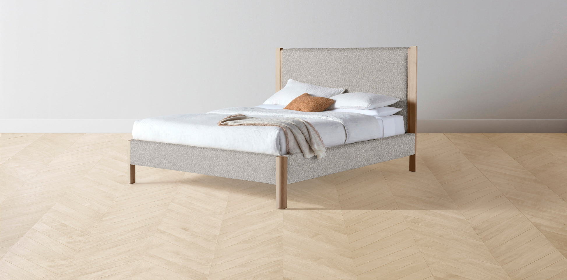 The Thompson - Italian Bouclé Fossil Bed - 48" Headboard - Upholstered on reverse
