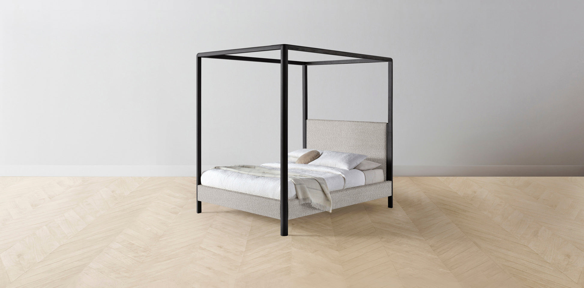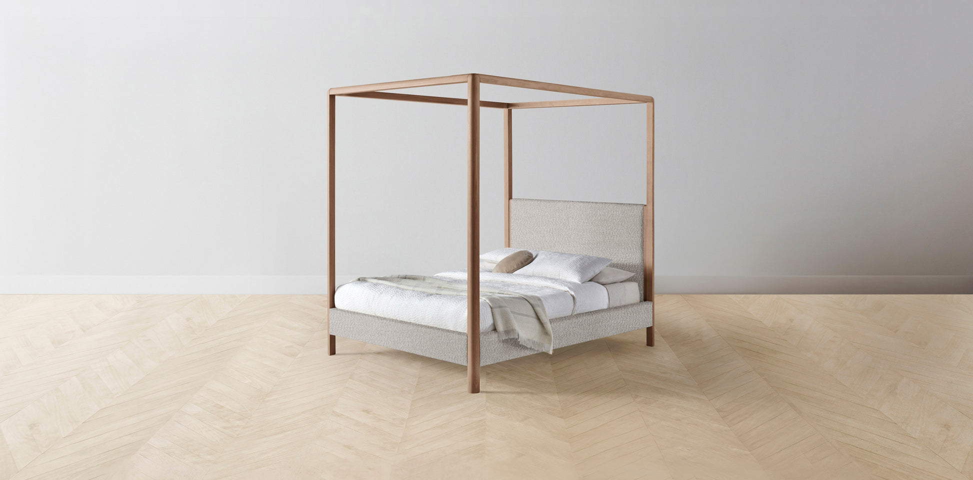 The Thompson - Italian Bouclé Fossil Canopy Bed - 48" Headboard - Upholstered on reverse
