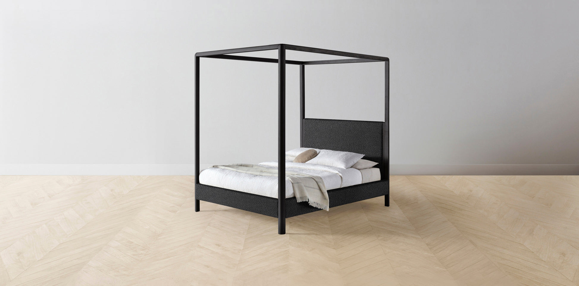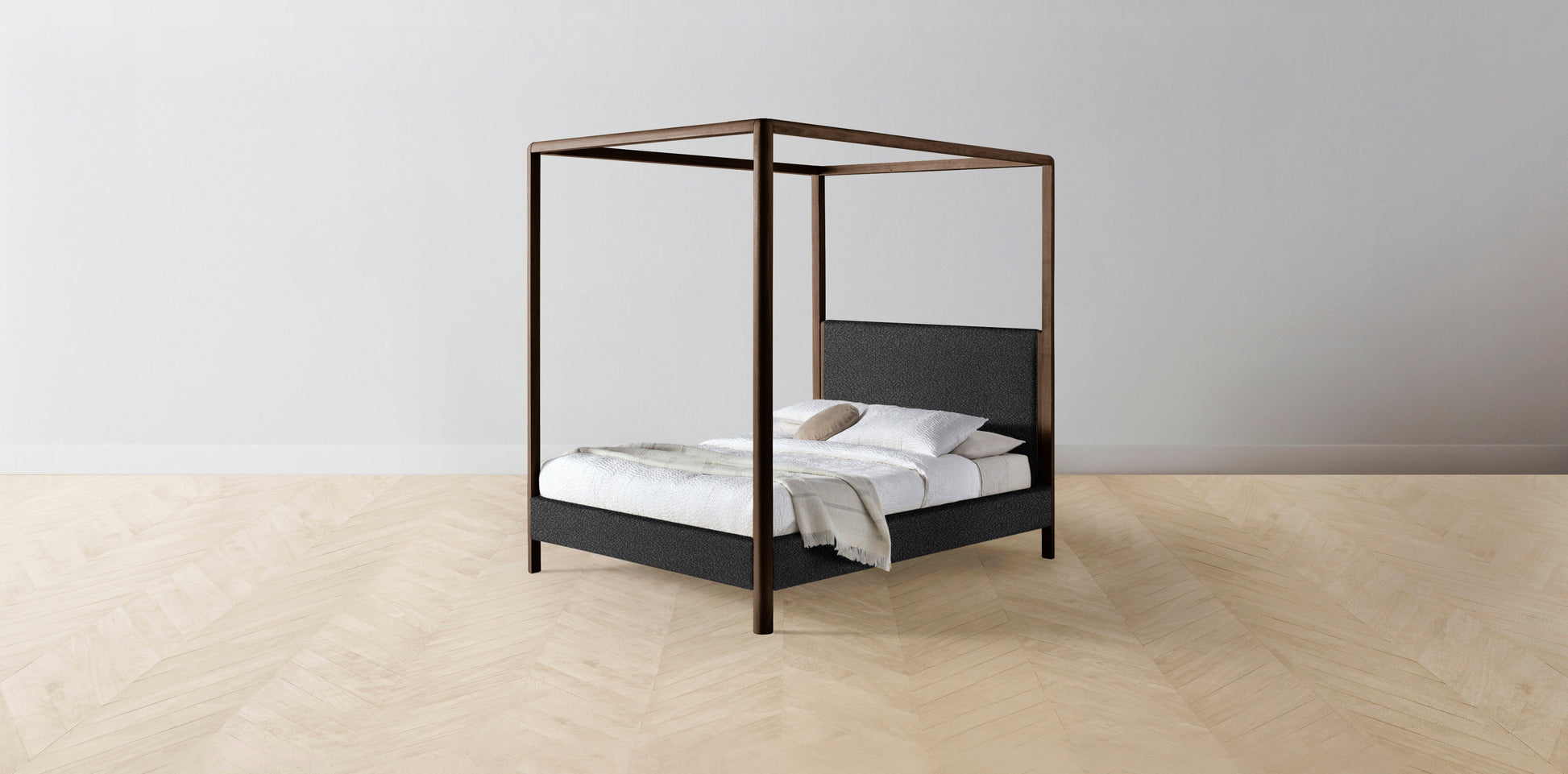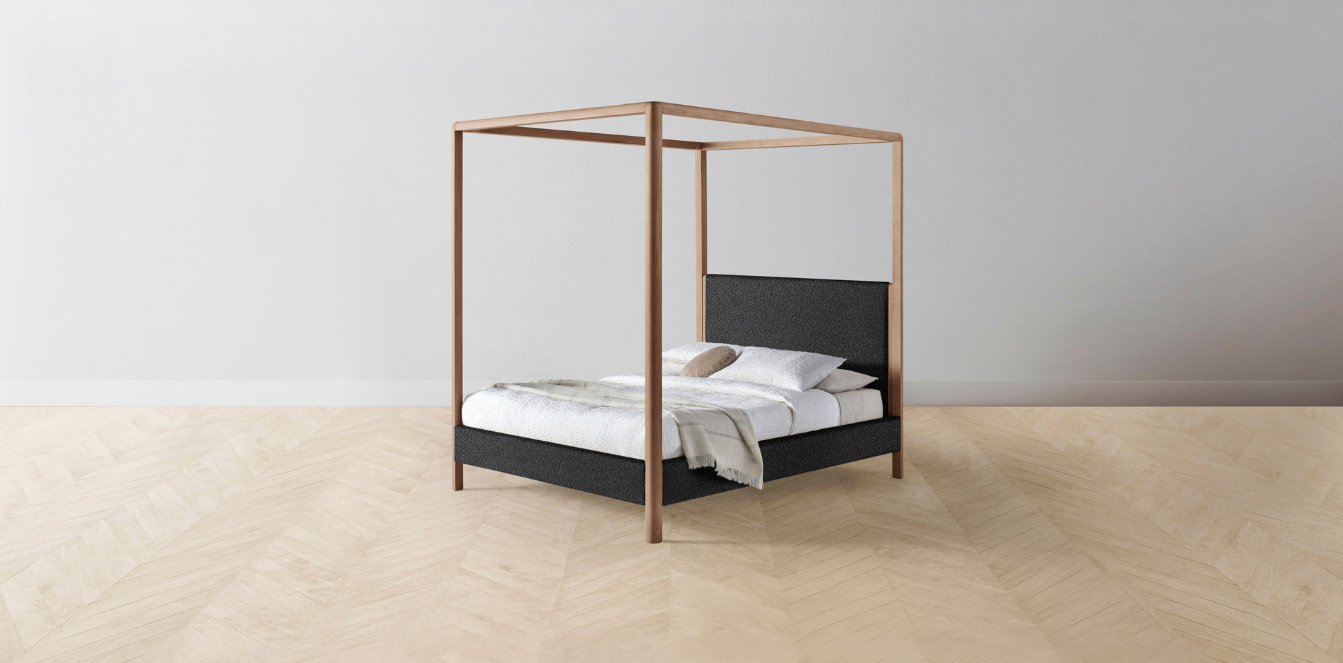 The Thompson - Italian Bouclé Storm Canopy Bed - 48" Headboard - Muslin on reverse