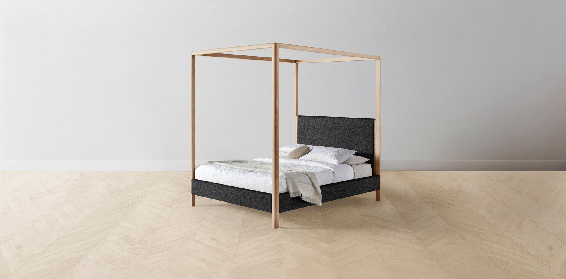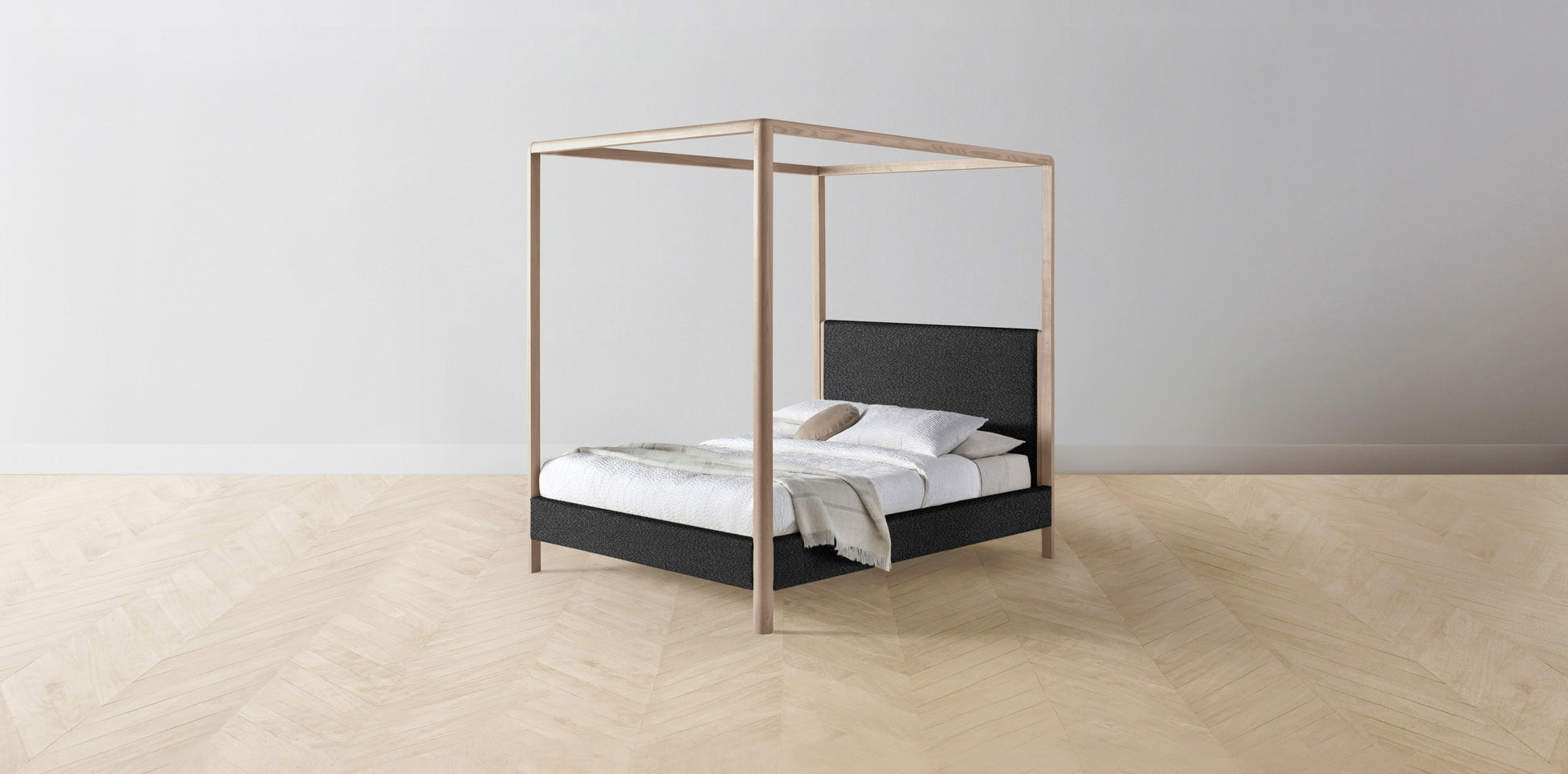 The Thompson - Italian Bouclé Storm Canopy Bed - 48" Headboard - Upholstered on reverse
