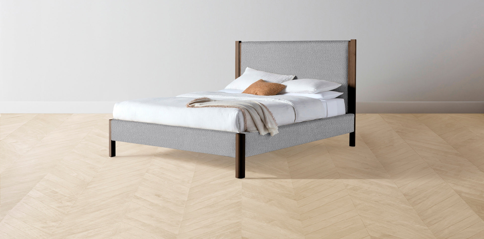 The Thompson - Italian Bouclé Waterfall Bed - 48" Headboard - Muslin on reverse