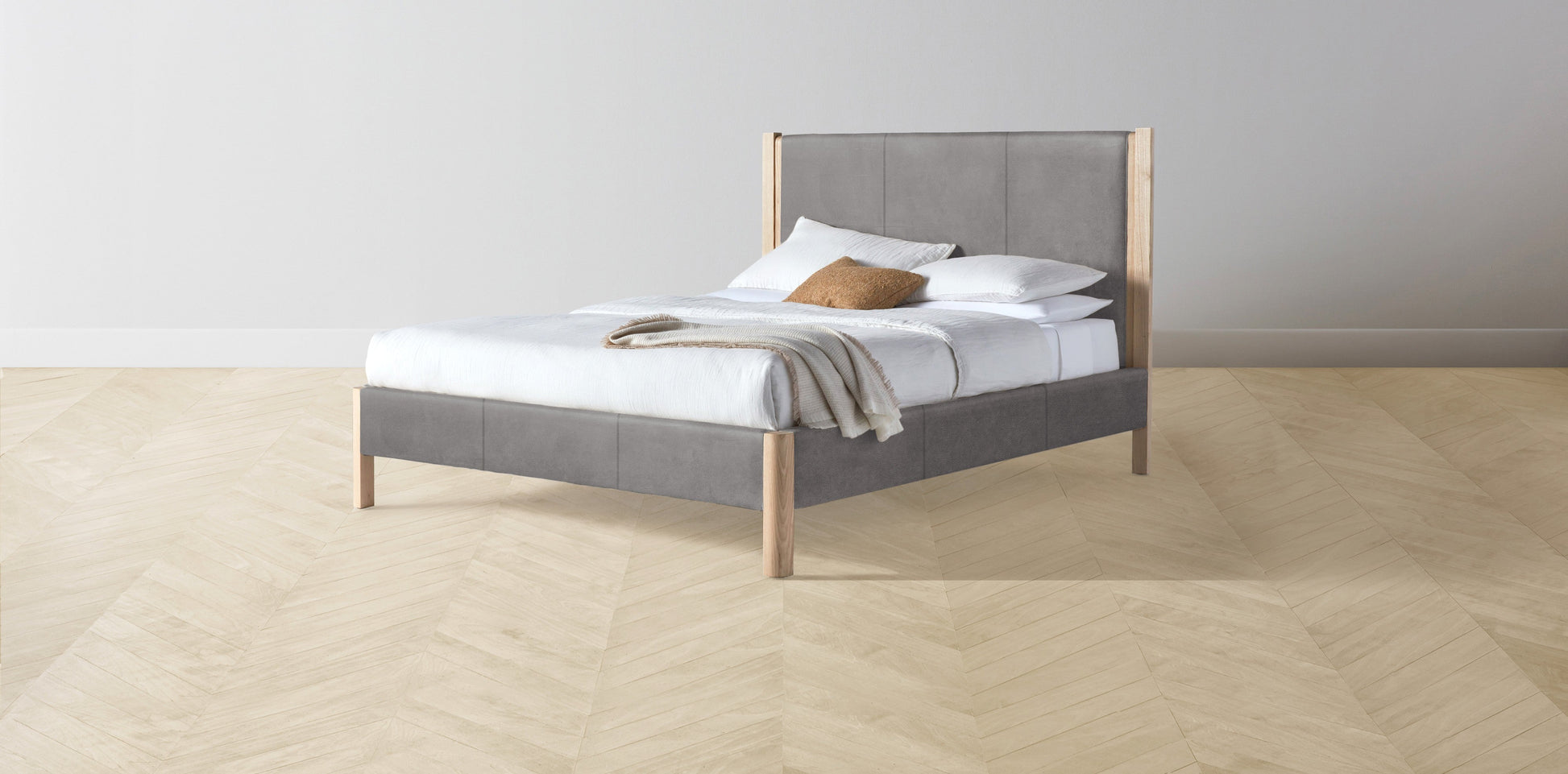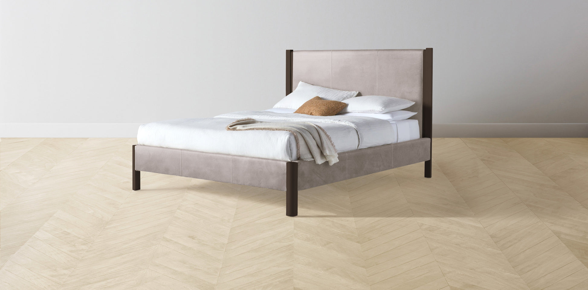 The Thompson - Nubuck Leather Asphalt Bed - 48" Headboard - Upholstered on reverse