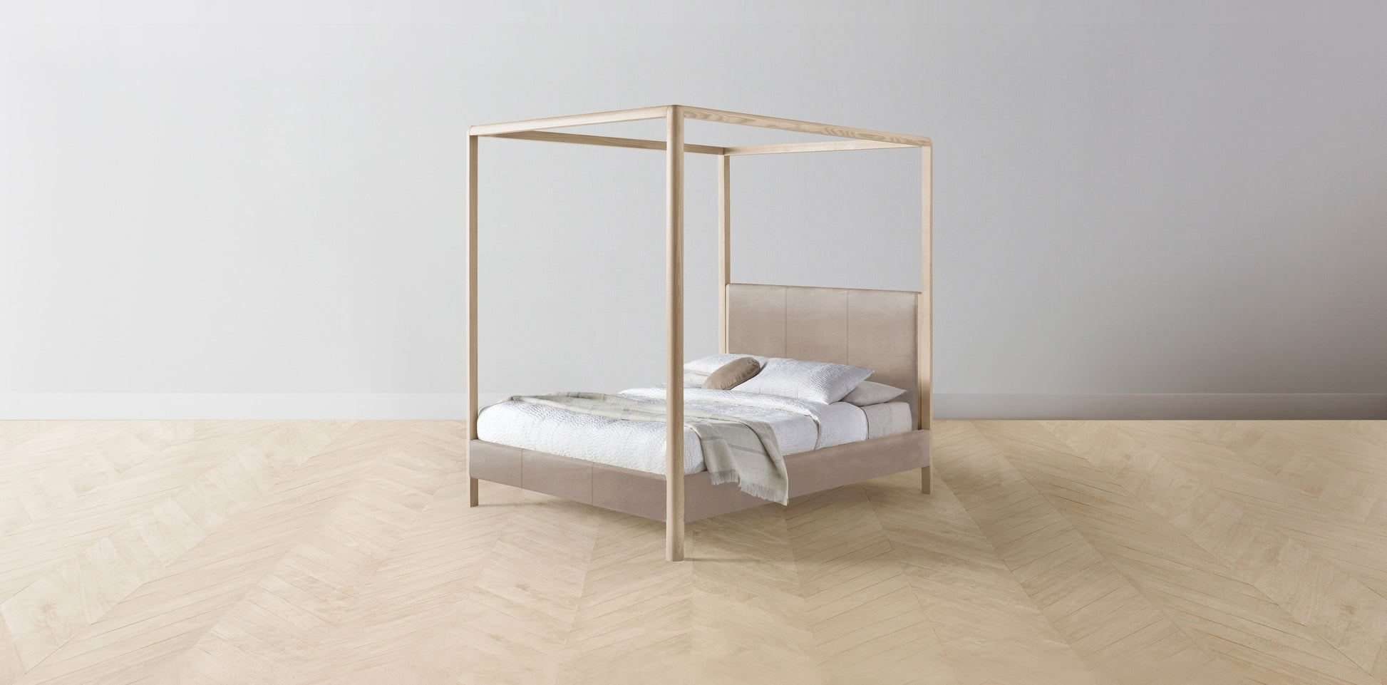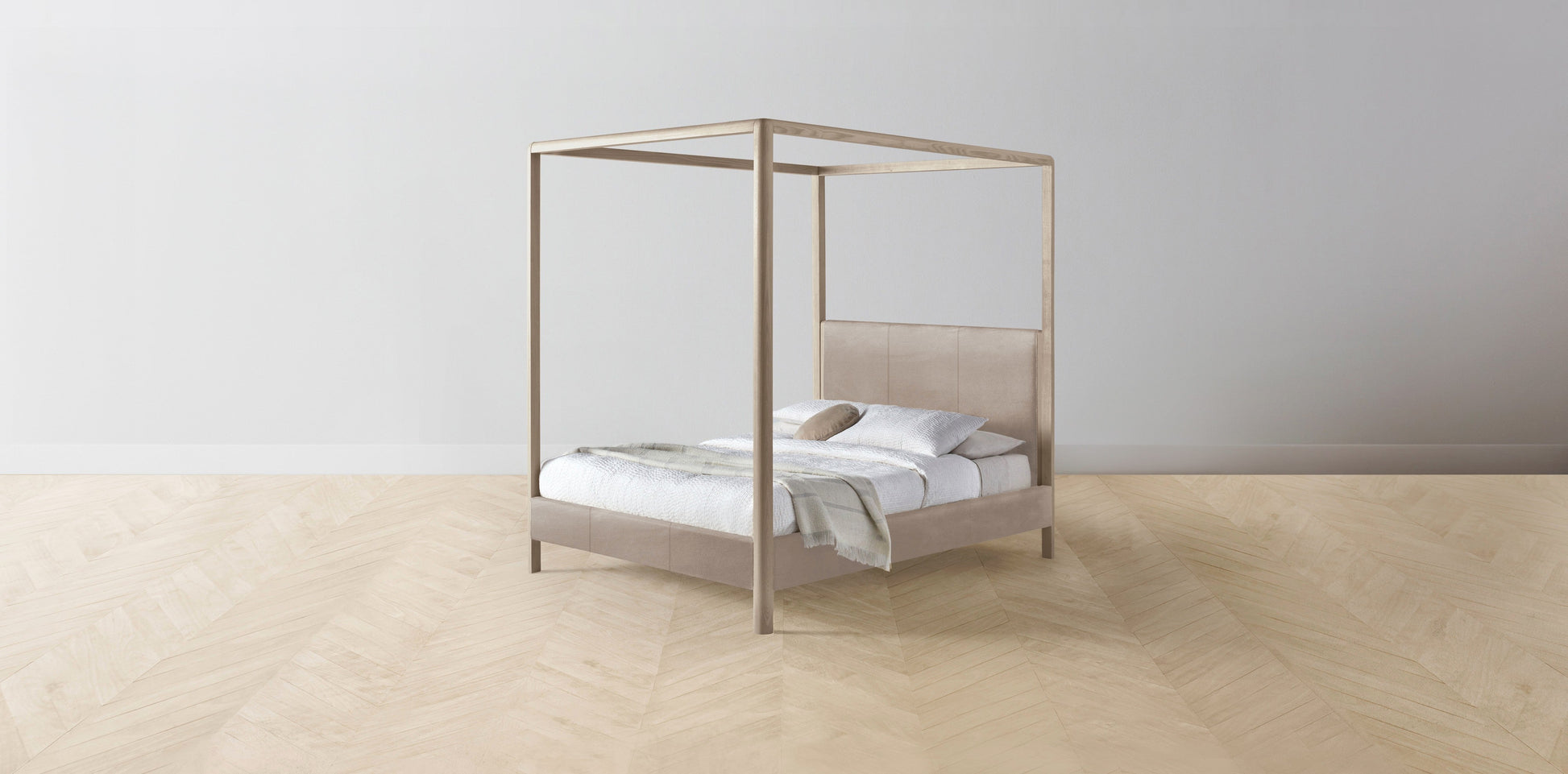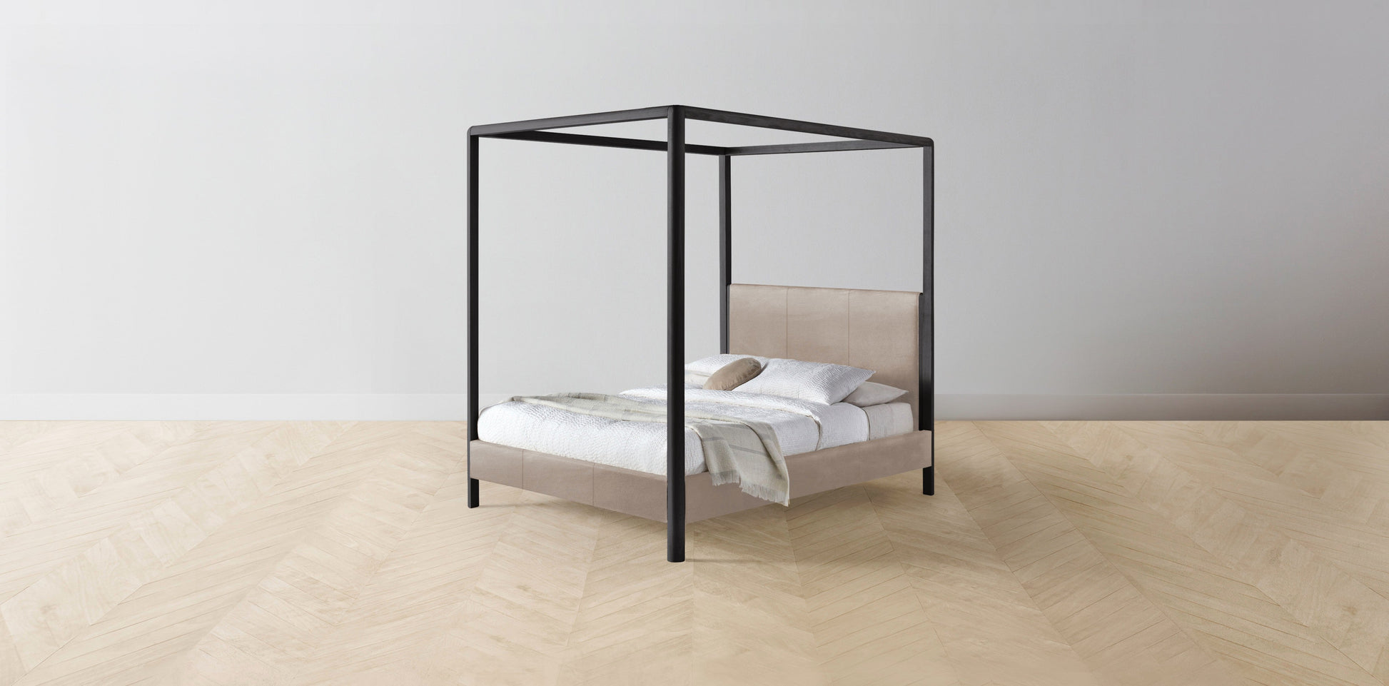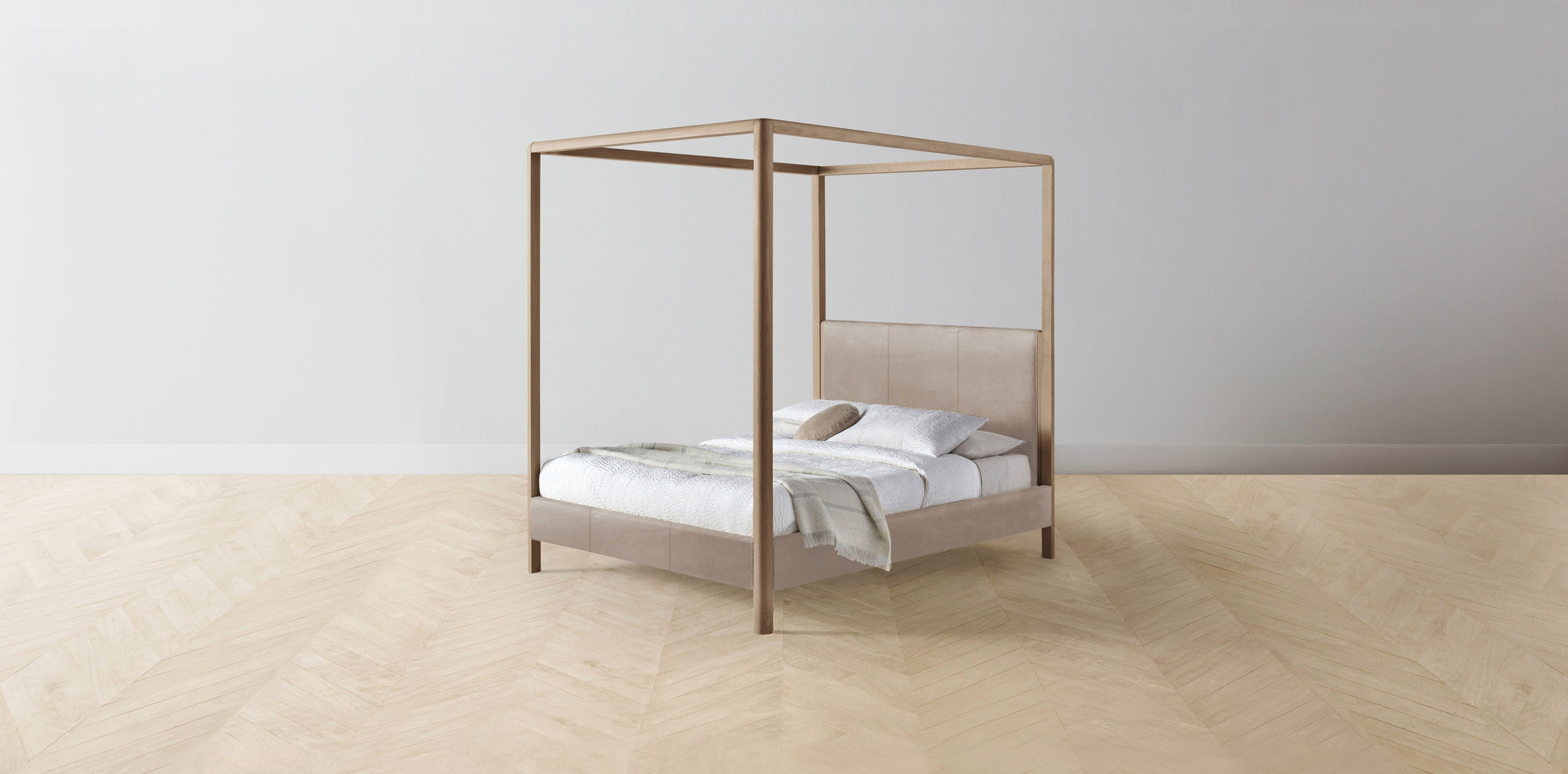 The Thompson - Nubuck Leather Fawn Canopy Bed - 48" Headboard - Upholstered on reverse