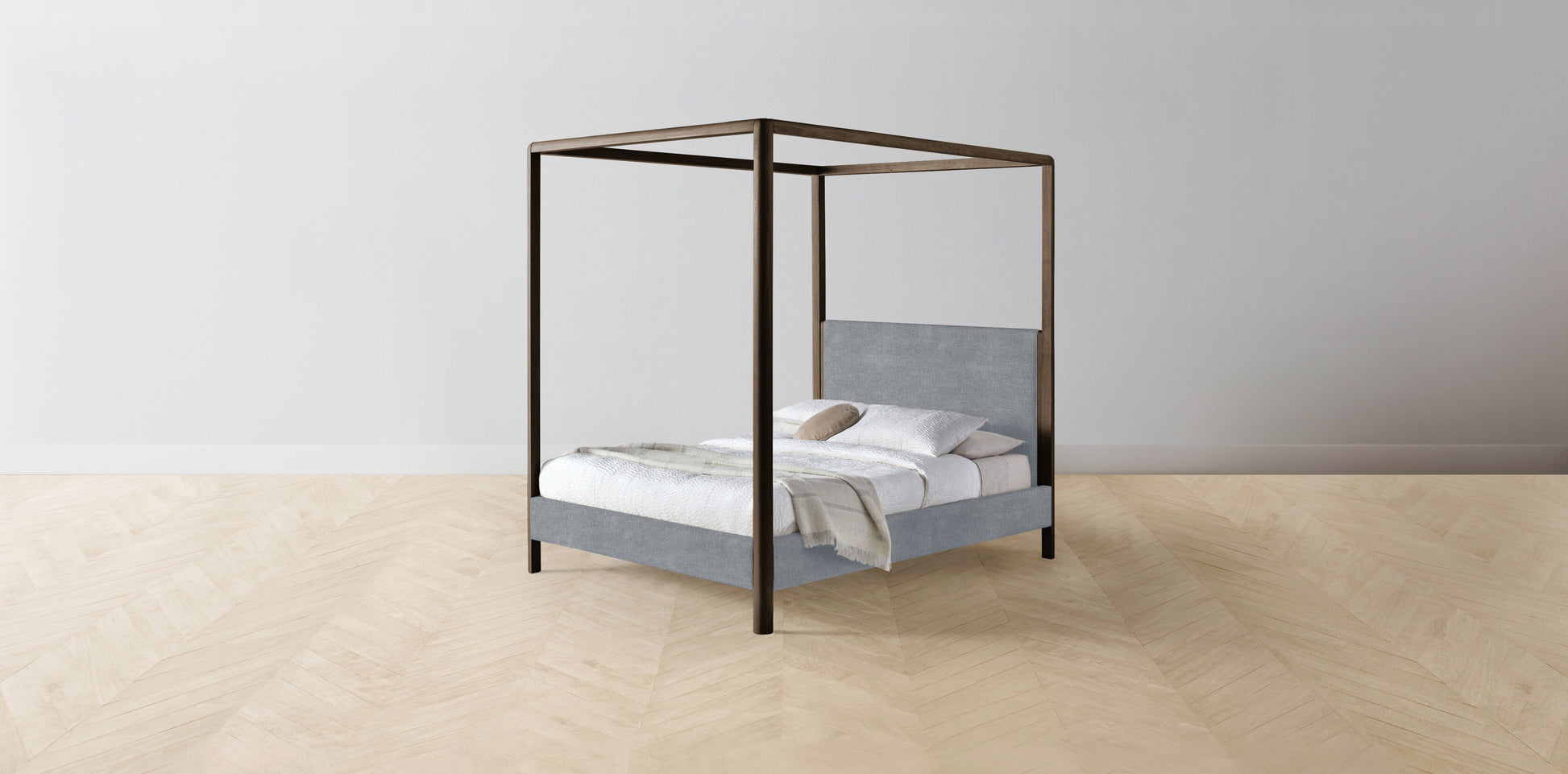 The Thompson - Performance Melange Weave Aegean Canopy Bed - 48" Headboard - Upholstered on reverse